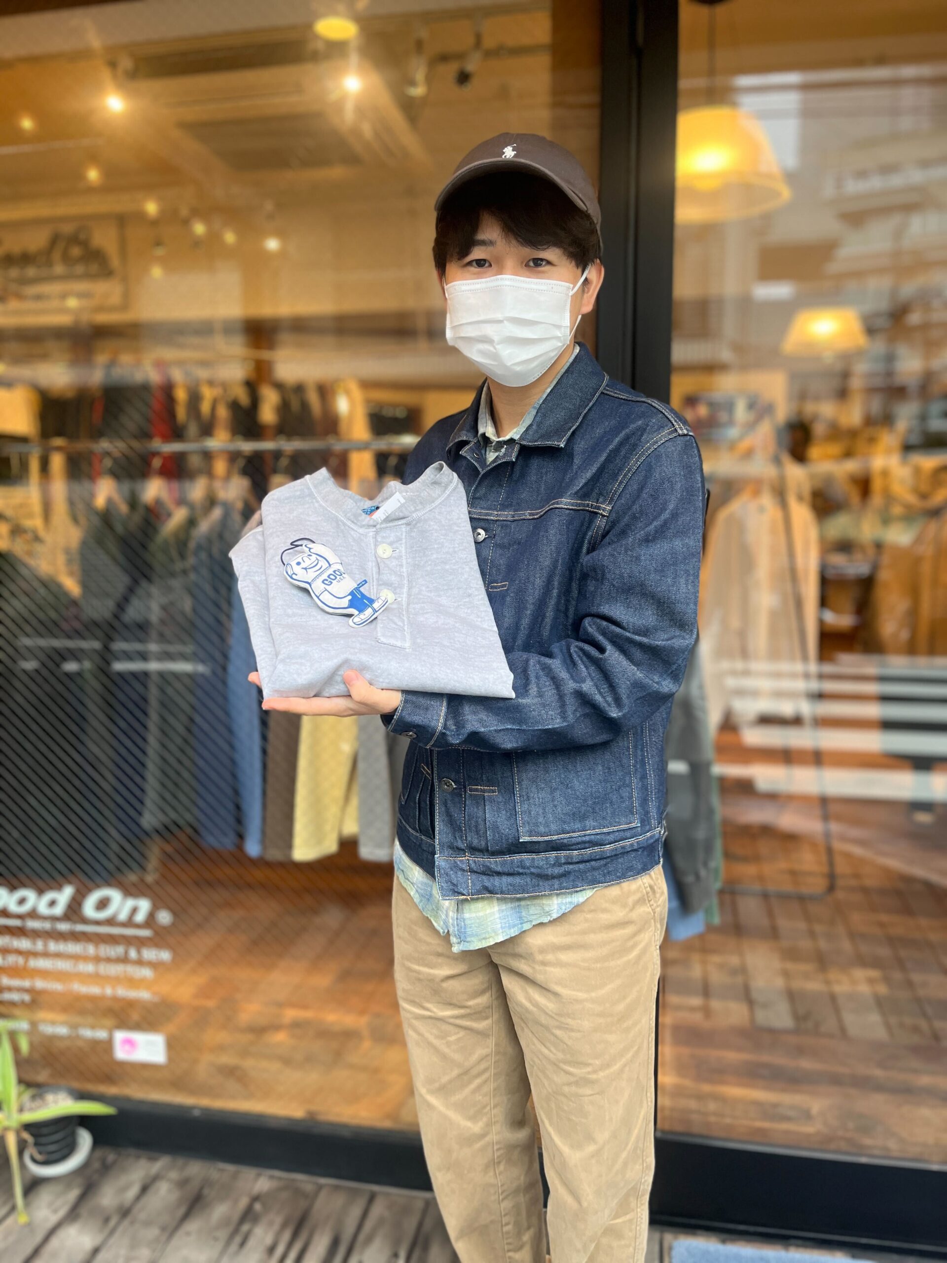 ヘビージャージーロングスリーブヘンリーTシャツを購入した井上さんは、Good On のフラッグシップショップに初来店。