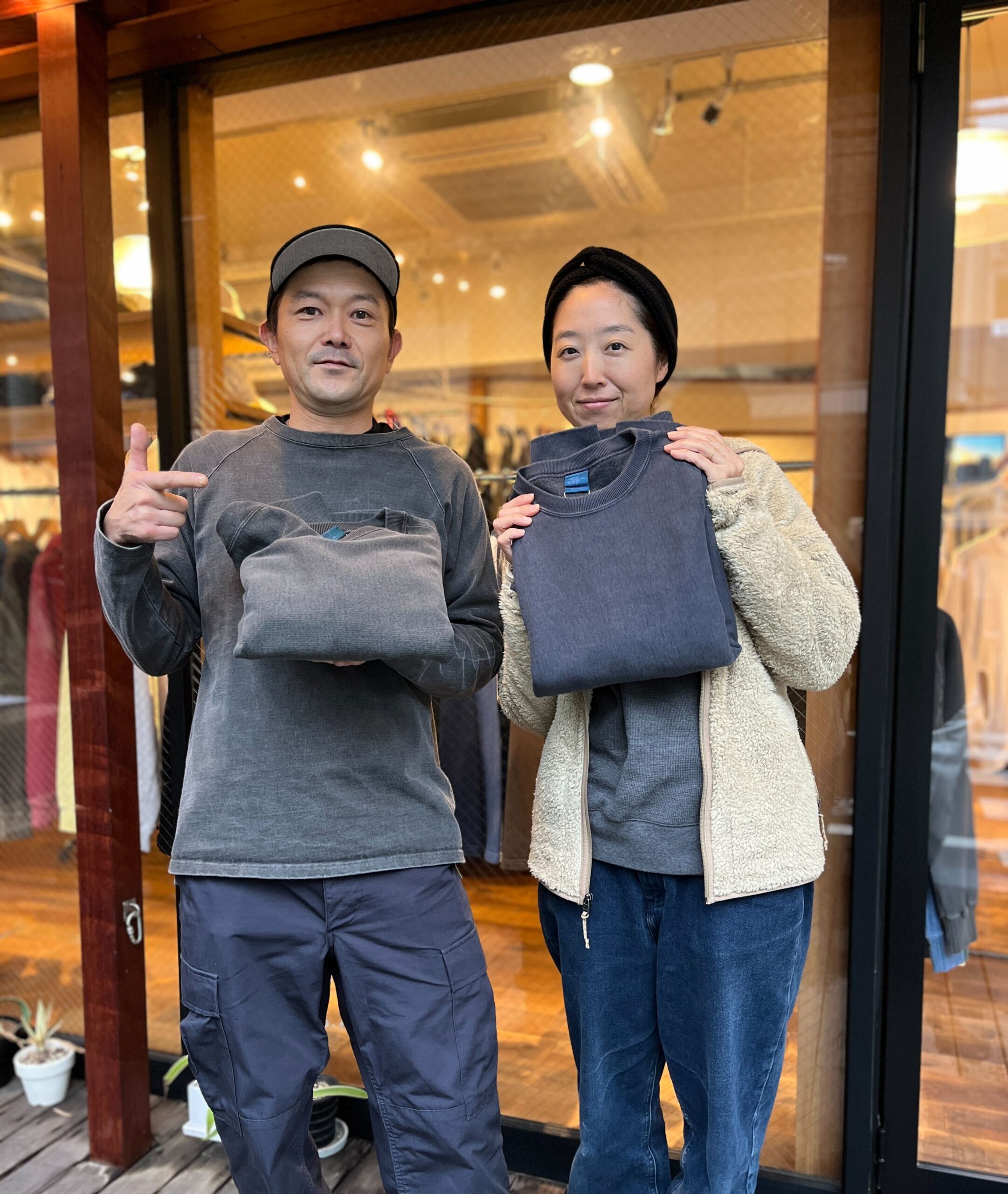 ヘビークルースウェットとクルースウェットカーディガンを購入されたアメリカ人カップル。